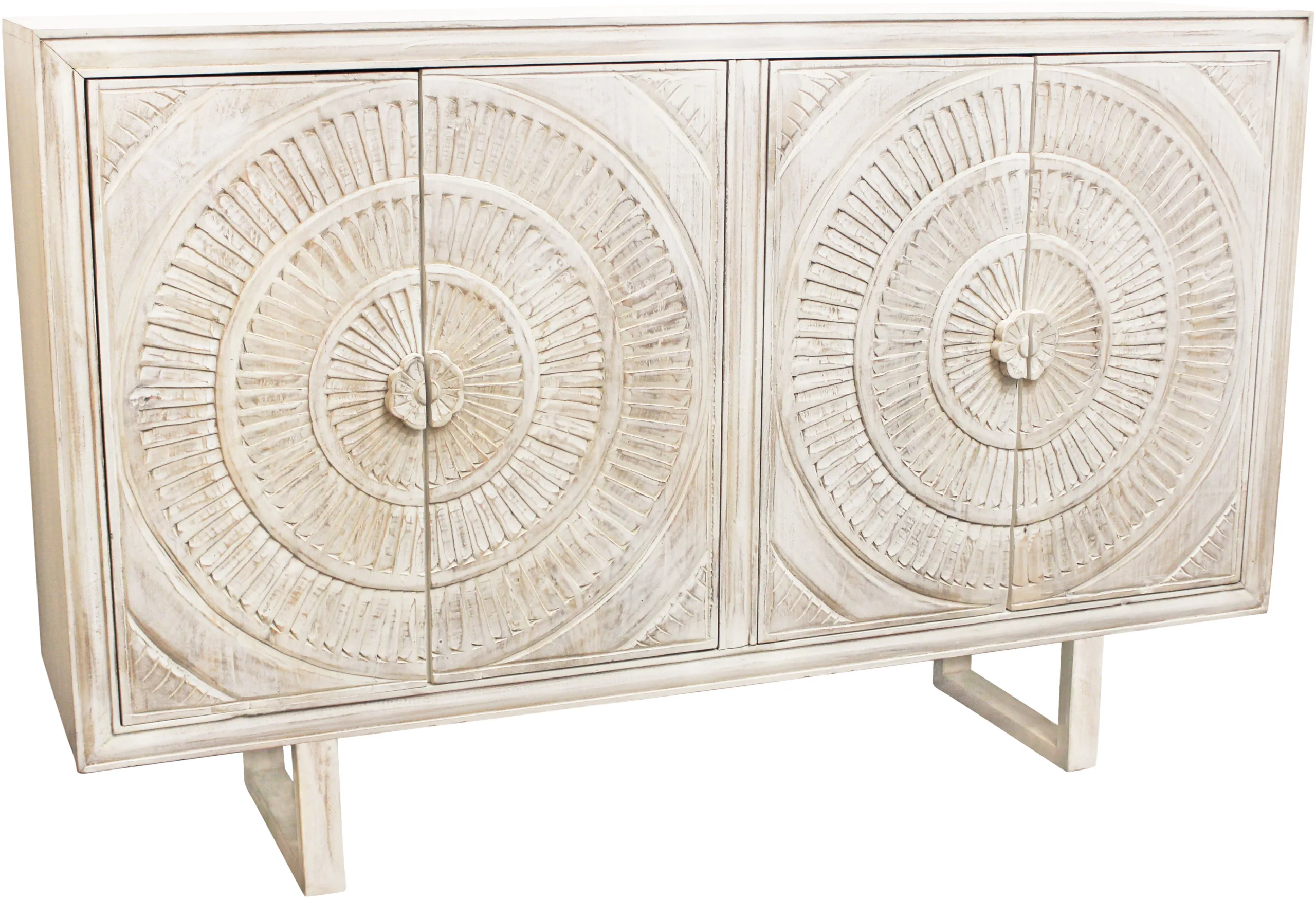 Albany 4- Door Hand-carved Sideboard – White Distressed
