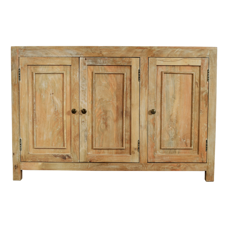 This Barry 3-Door Sideboard is masterfully crafted in India from solid mango wood. Its solid wood frame provides confidence-inspiring strength and stability. Three cabinet doors open to interior shelving space, making this sideboard a great addition for anyone aiming to keep their living spaces both organized and stylish. With a classic rectangular shape and beautiful natural finish, this piece blends seamlessly with a wide range of existing décor and design aesthetics.