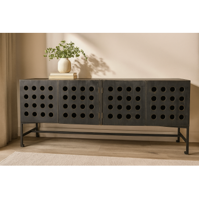 - Eco-friendly buffet cabinet masterfully crafted from reclaimed and recycled woods