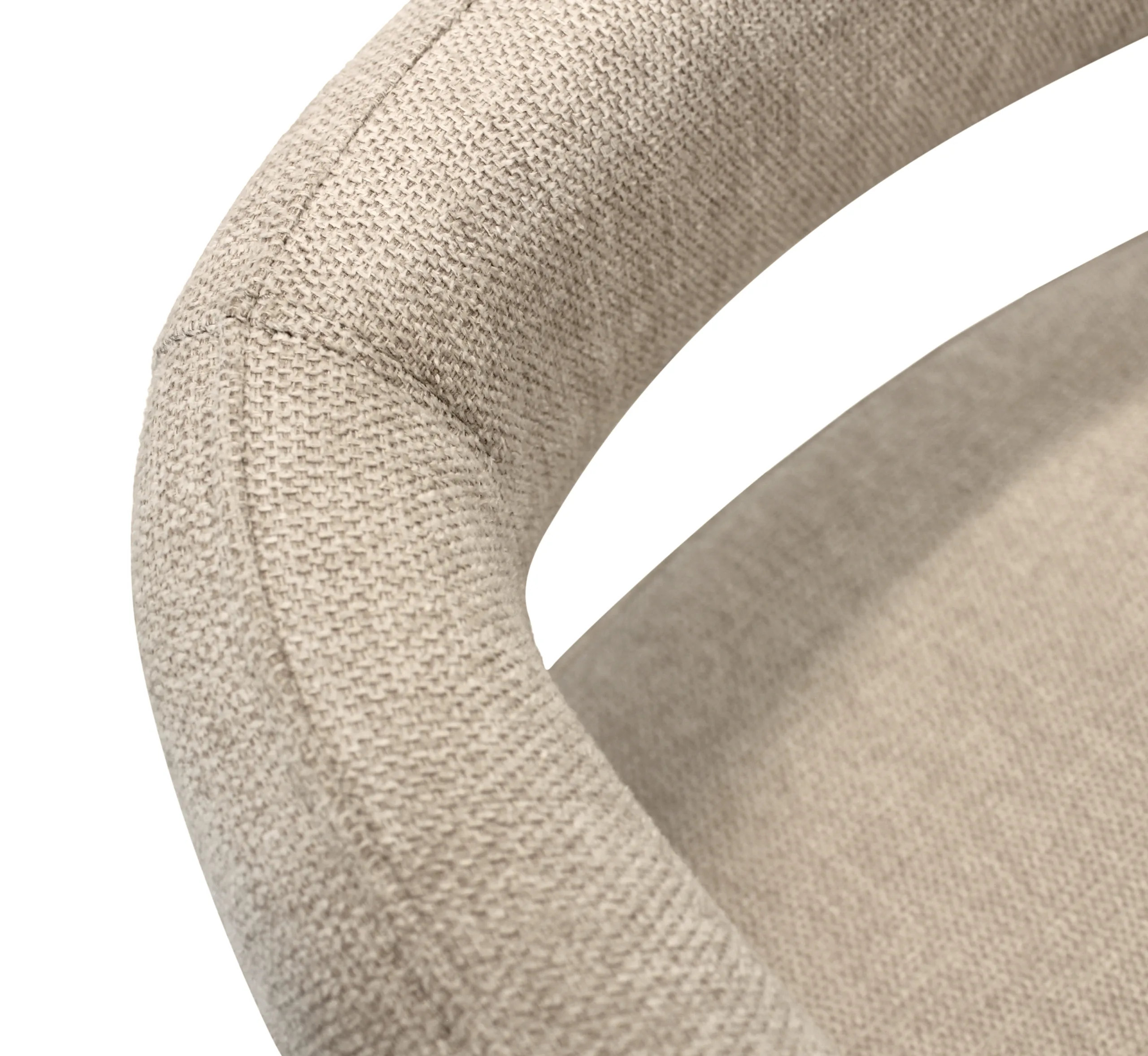 Chic and sophisticated, this Belfast Comfy Counter Chair works beautifully at a counter or bar top. The chair features a sturdy metal frame topped with cushioning that is filled with a combination of foam and down and finished with an ivory fabric made from linen and polyester. Clean lines and a sculptural silhouette make this counter chair a true statement piece that is both eye-catching and exceedingly comfortable to sit in.
