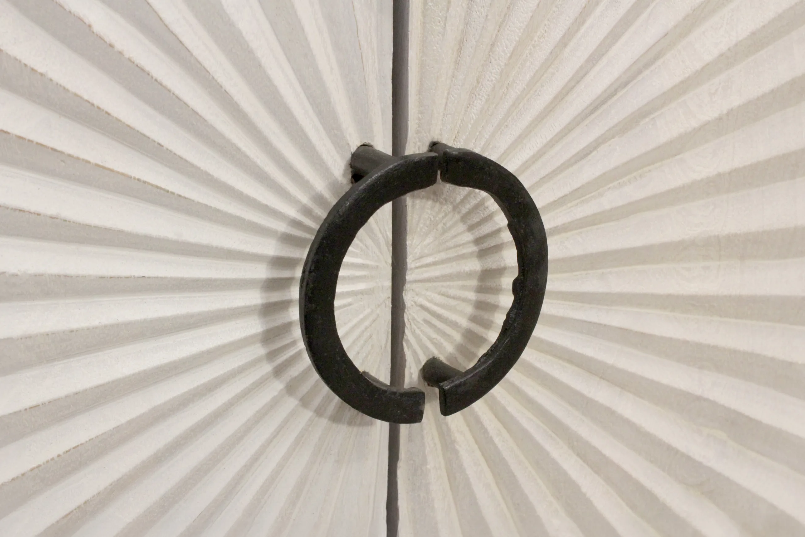 - Features satin black finished hardware contrasting beautifully against its light finish