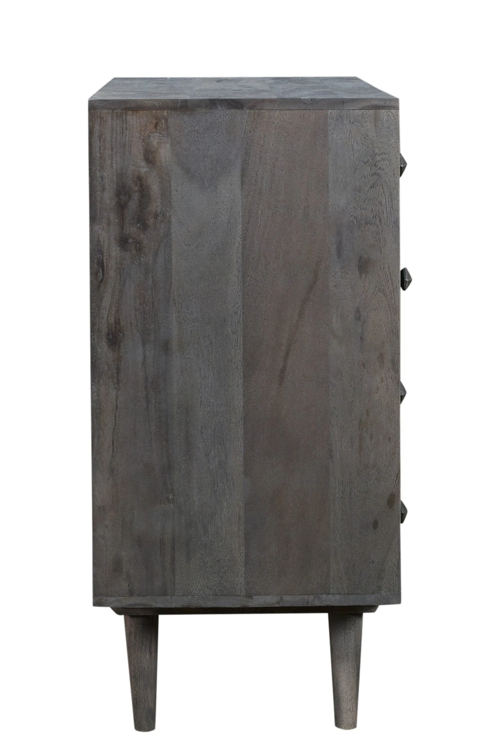 Utilizing angular impressions and diamond reflections, the Brent collection celebrates unparalleled design and quality in its effects. Hand-crafted from solid, kiln-dried mango wood in dark grey finish, these pieces are testaments of contemporary design that took the best of traditional accents and modernized them into the benchmark of home elegance.