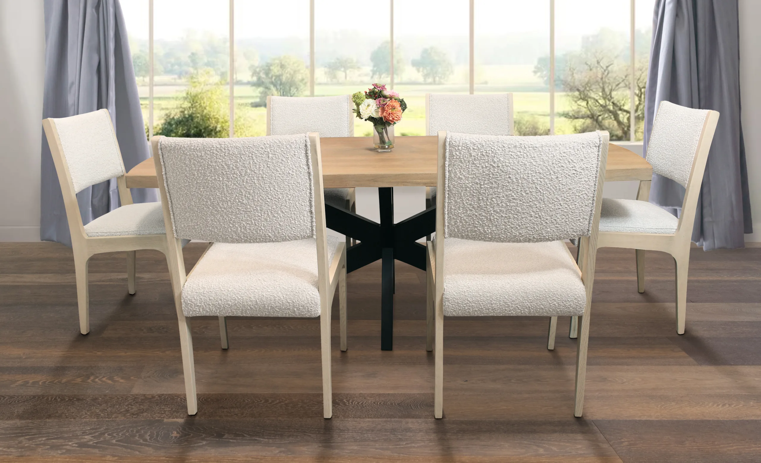 Damian 7-Piece Dining Set with 6 Ashton Boucle Chairs – Ivory
