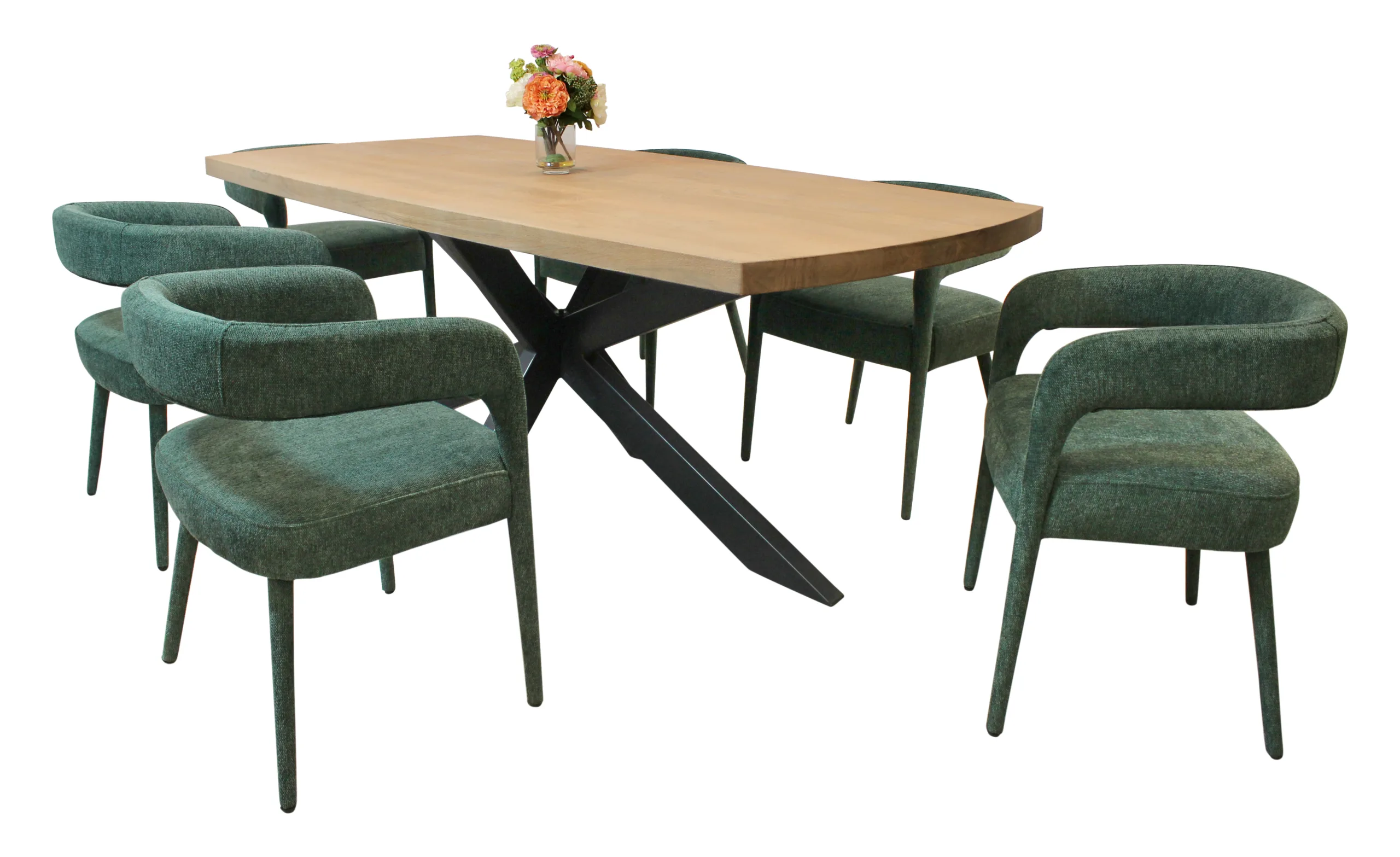 Damian 7-Piece Dining Set with 82″ Table And 6 Belfast Chairs – Teal