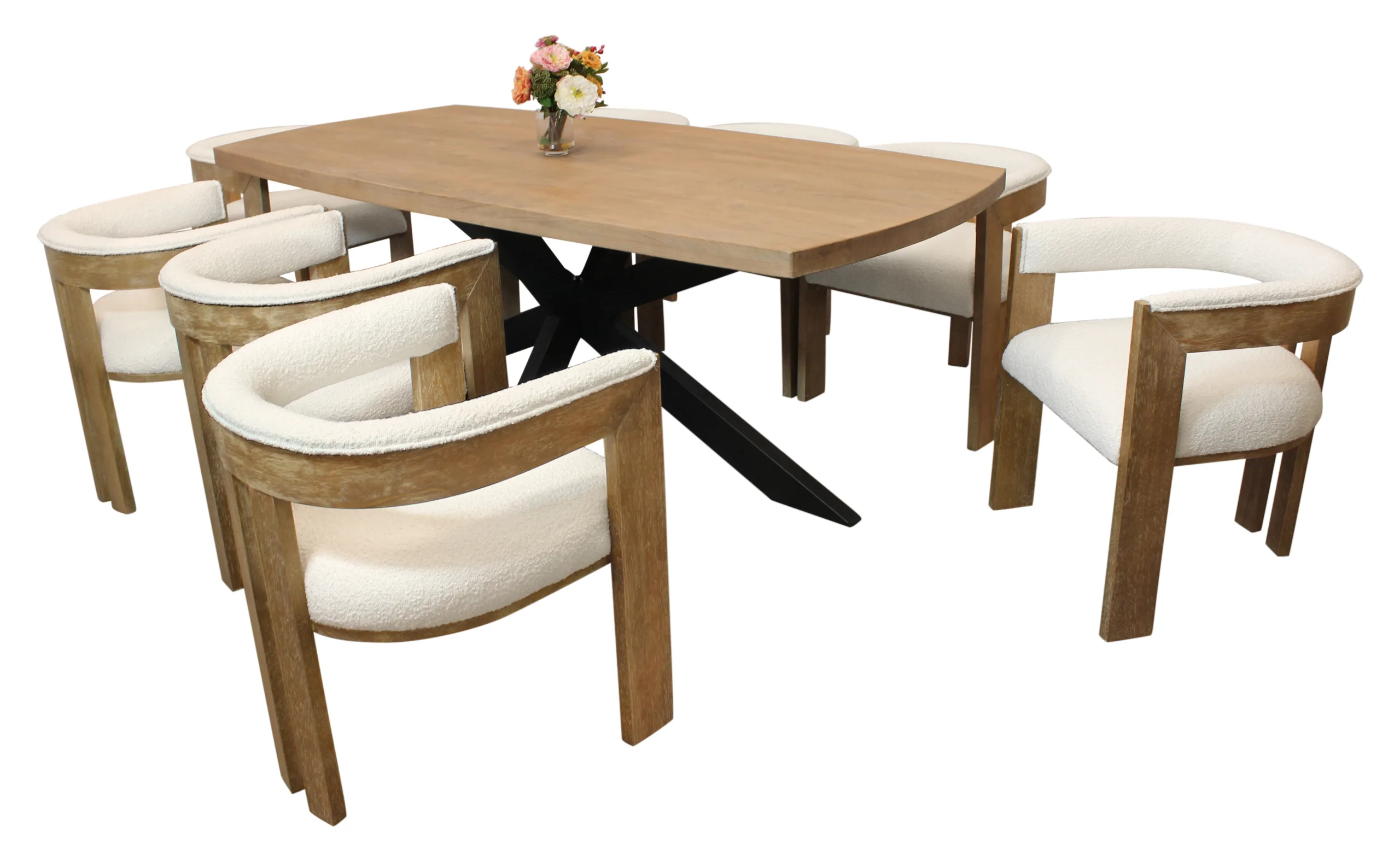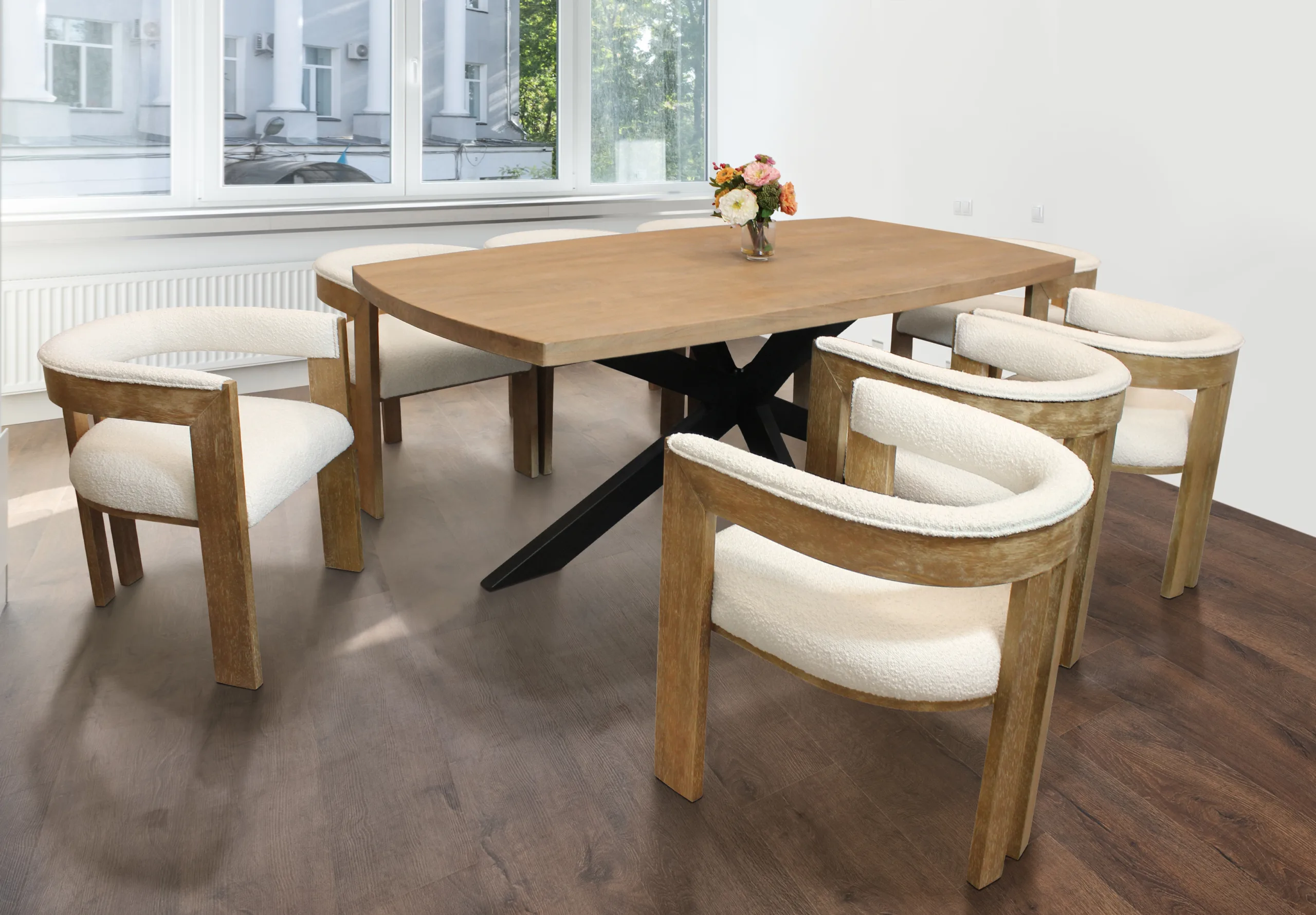 Damian 9-Piece Set with 82″ Table And 8 Trident Boucle Chairs – Ivory