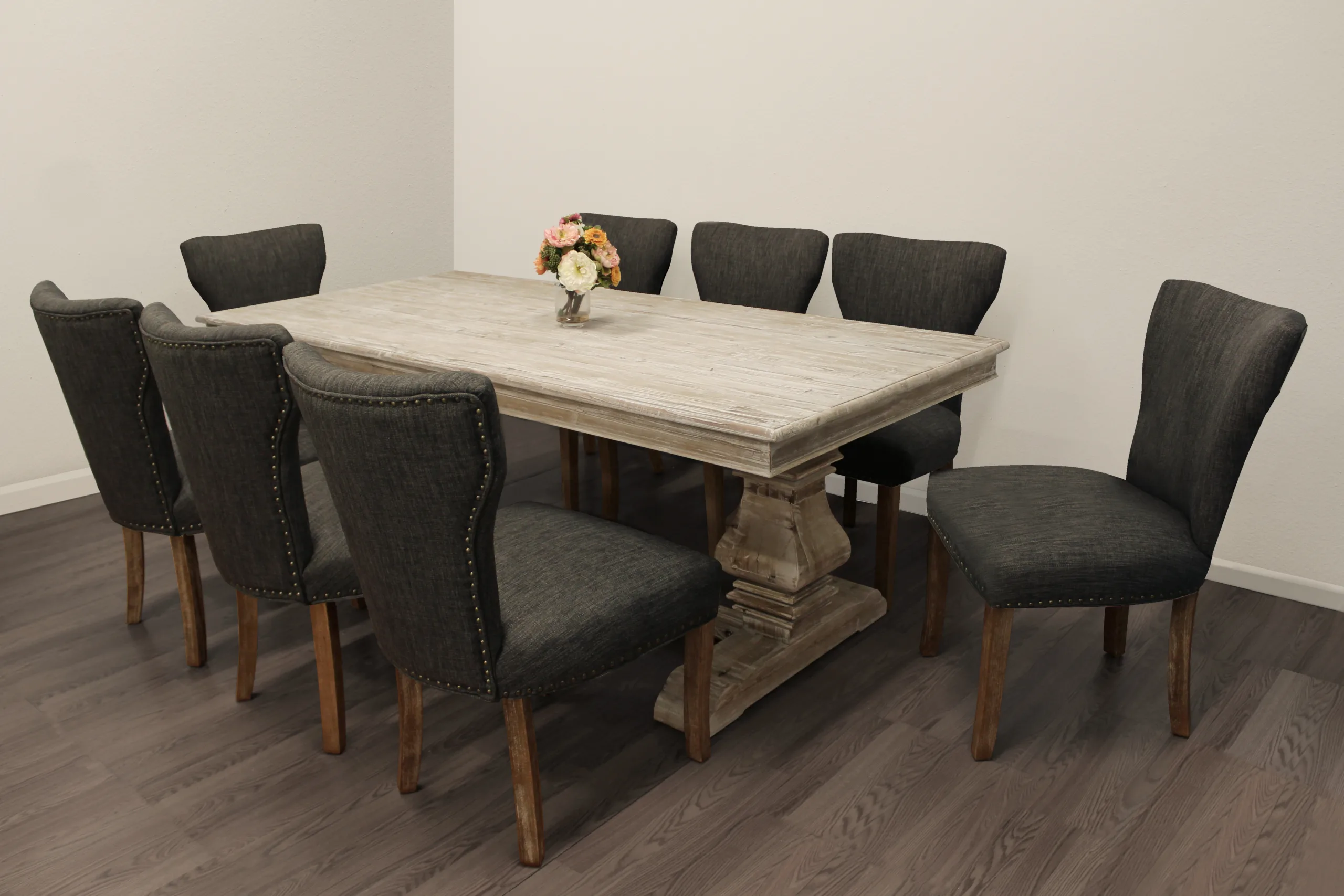 Ishida 84″ Dining Table Set with 8 Howell Chairs – Dark Grey
