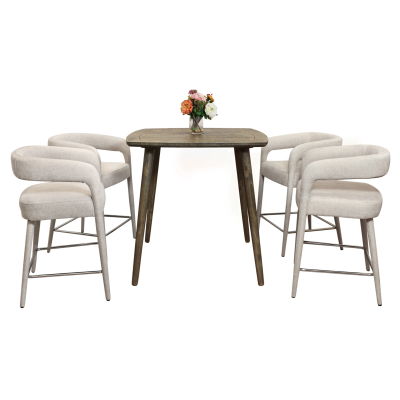 This beautiful five-piece dining set features our Jensen 48” Round Solid Wood Dining Table surrounded by four Ivory Howell Side Chairs. When brought together, the display is an eye-catching blend of hand-crafted clean, traditional lines. The dining table is masterfully crafted from solid kiln dried wood and comes in a natural finish. The chairs feature a solid wood frame and soft woven linen fabric in a classic ivory color. This set’s timeless design allows it to blend beautifully with existing décor and immediately infuse any dining space with an air of elegance.