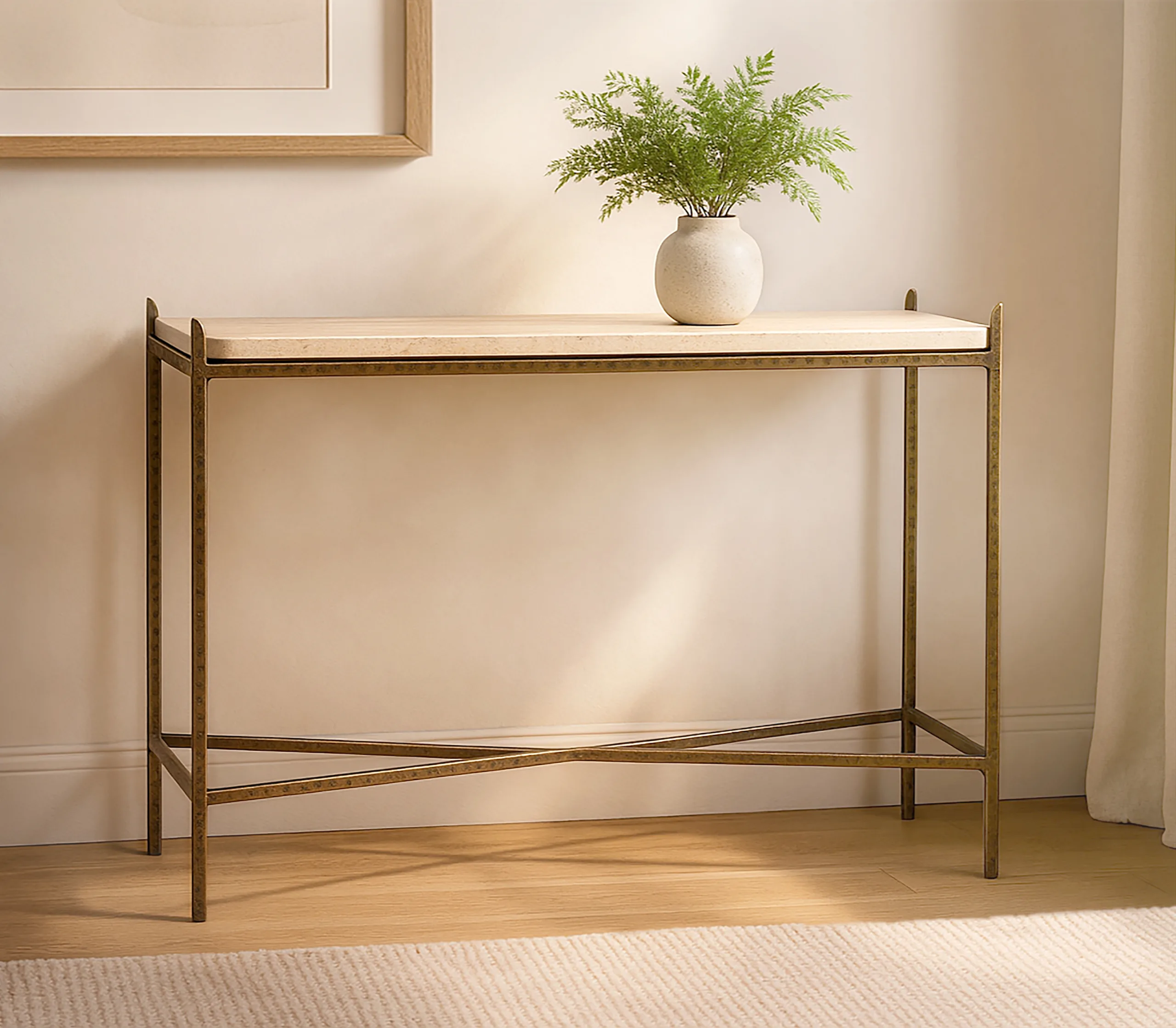 Kirby 48″ Console Table with Travertine Top