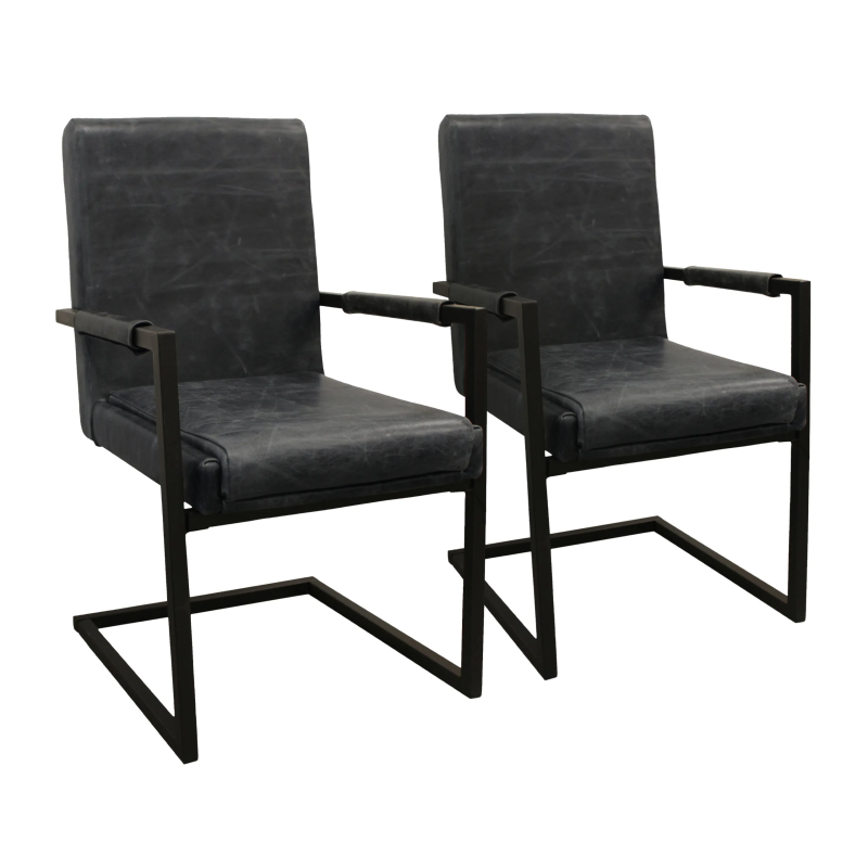 Lloyd Leather Arm Chair 2-Piece Set – Antique Black