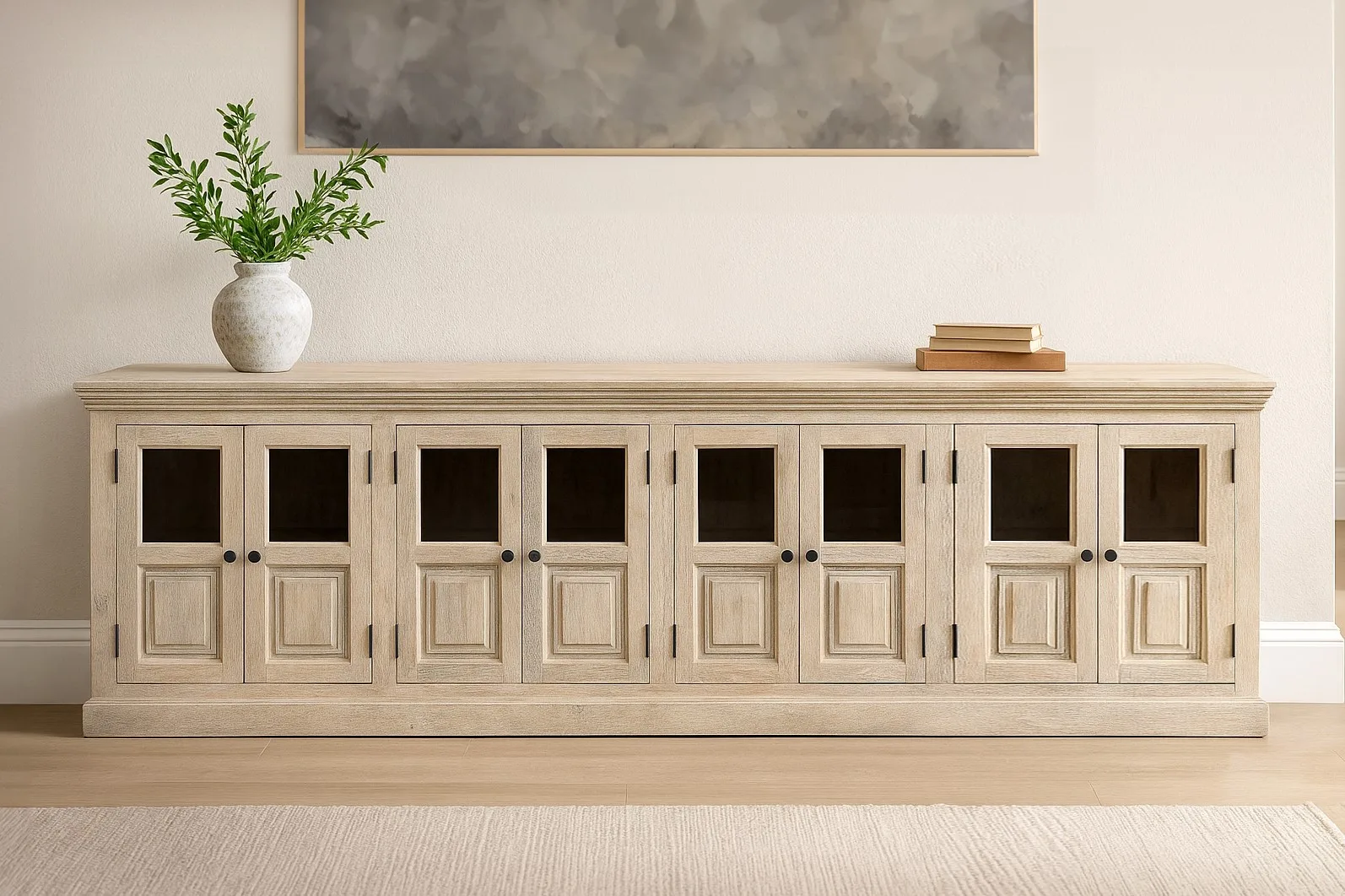 Lorient 8-Door Glass Sideboard – Distressed White