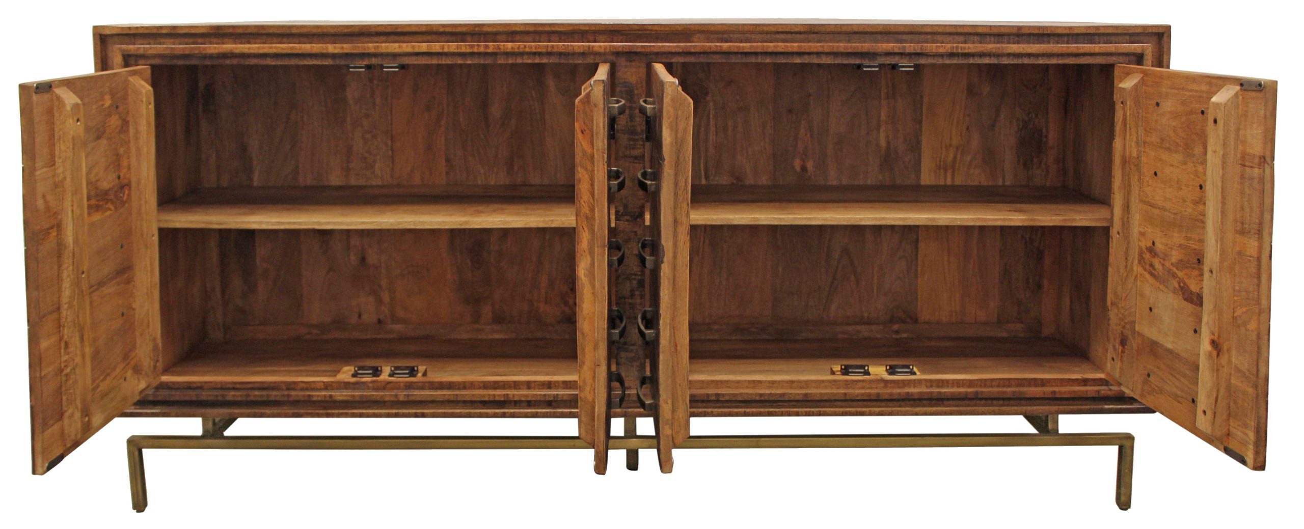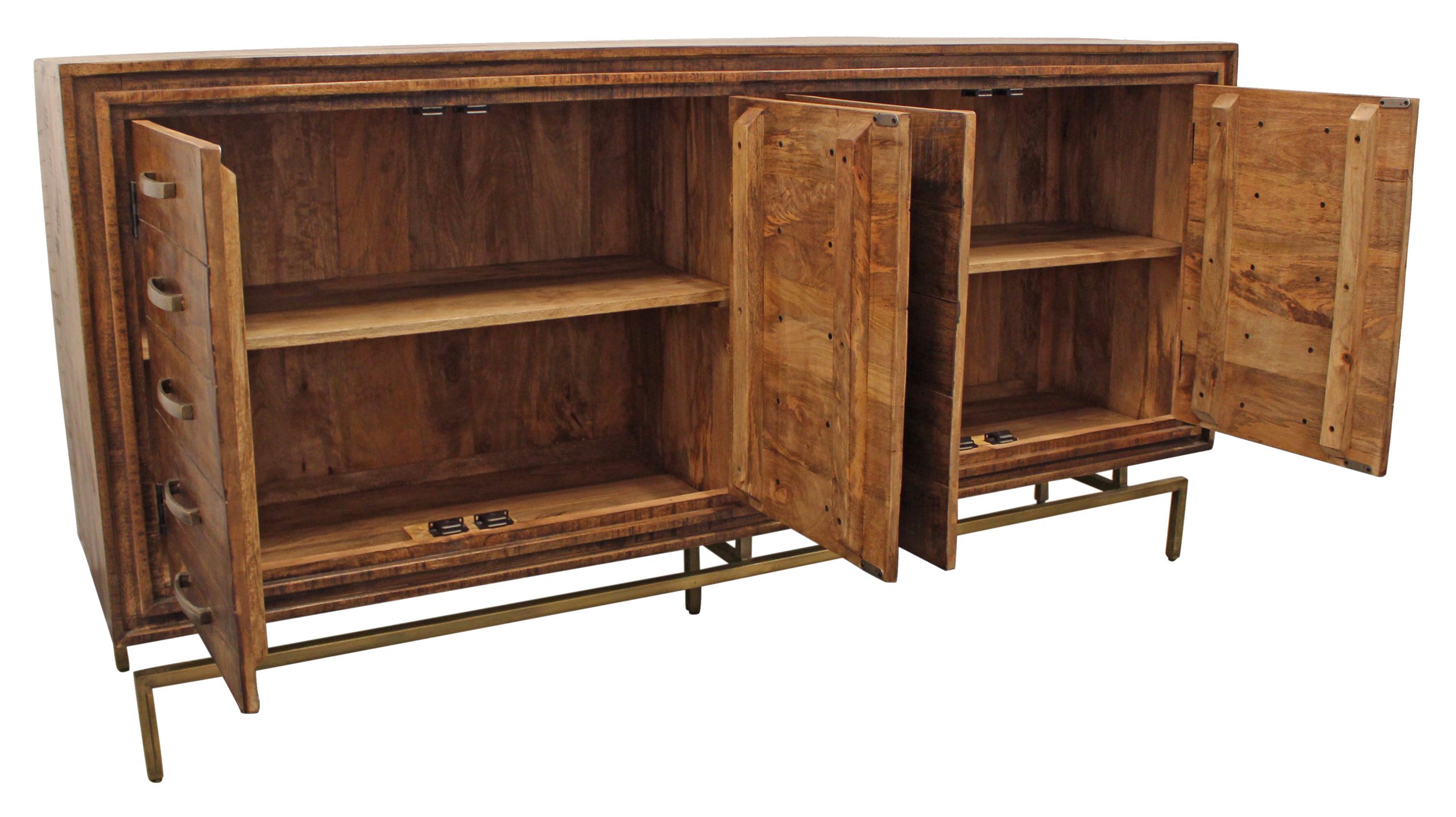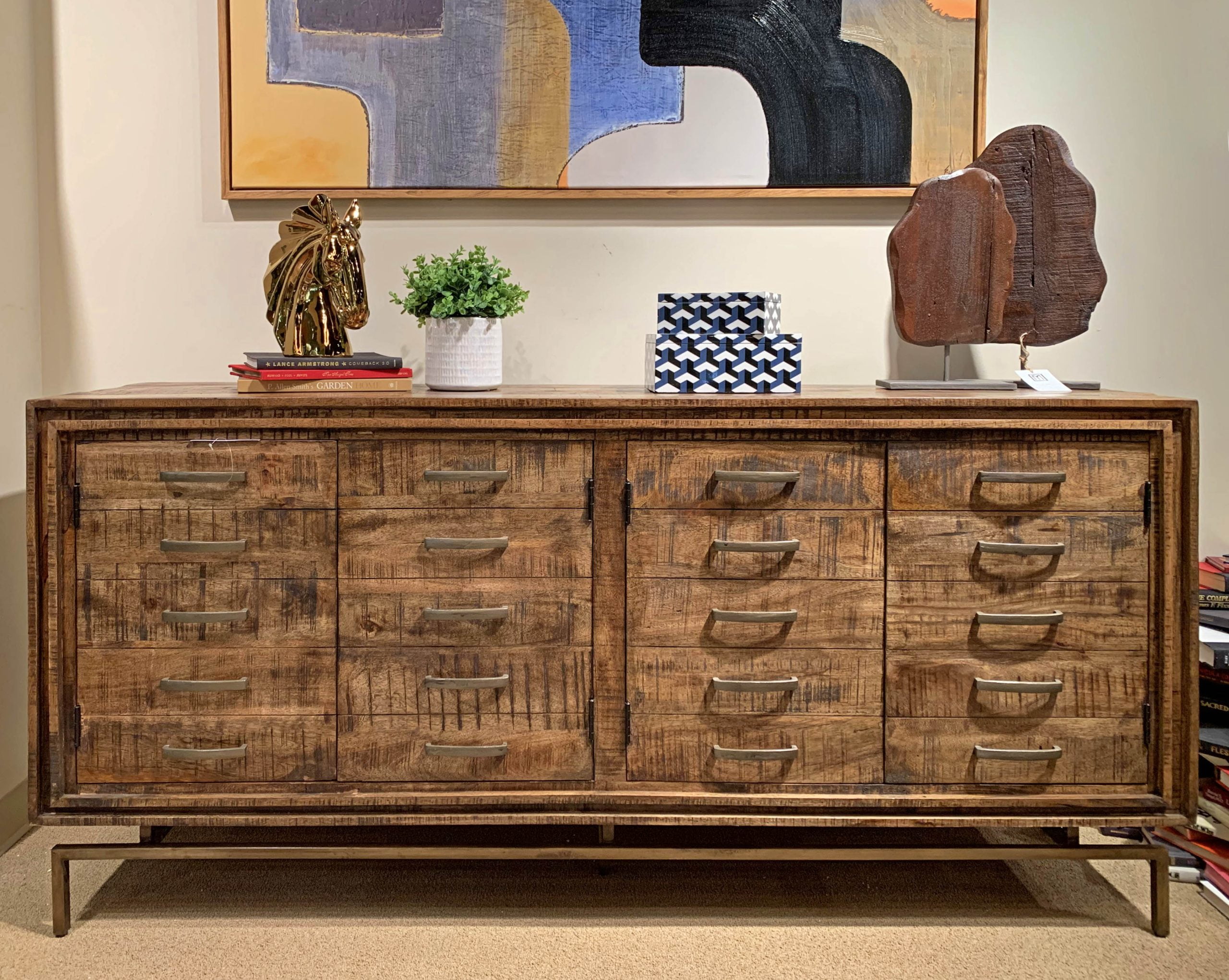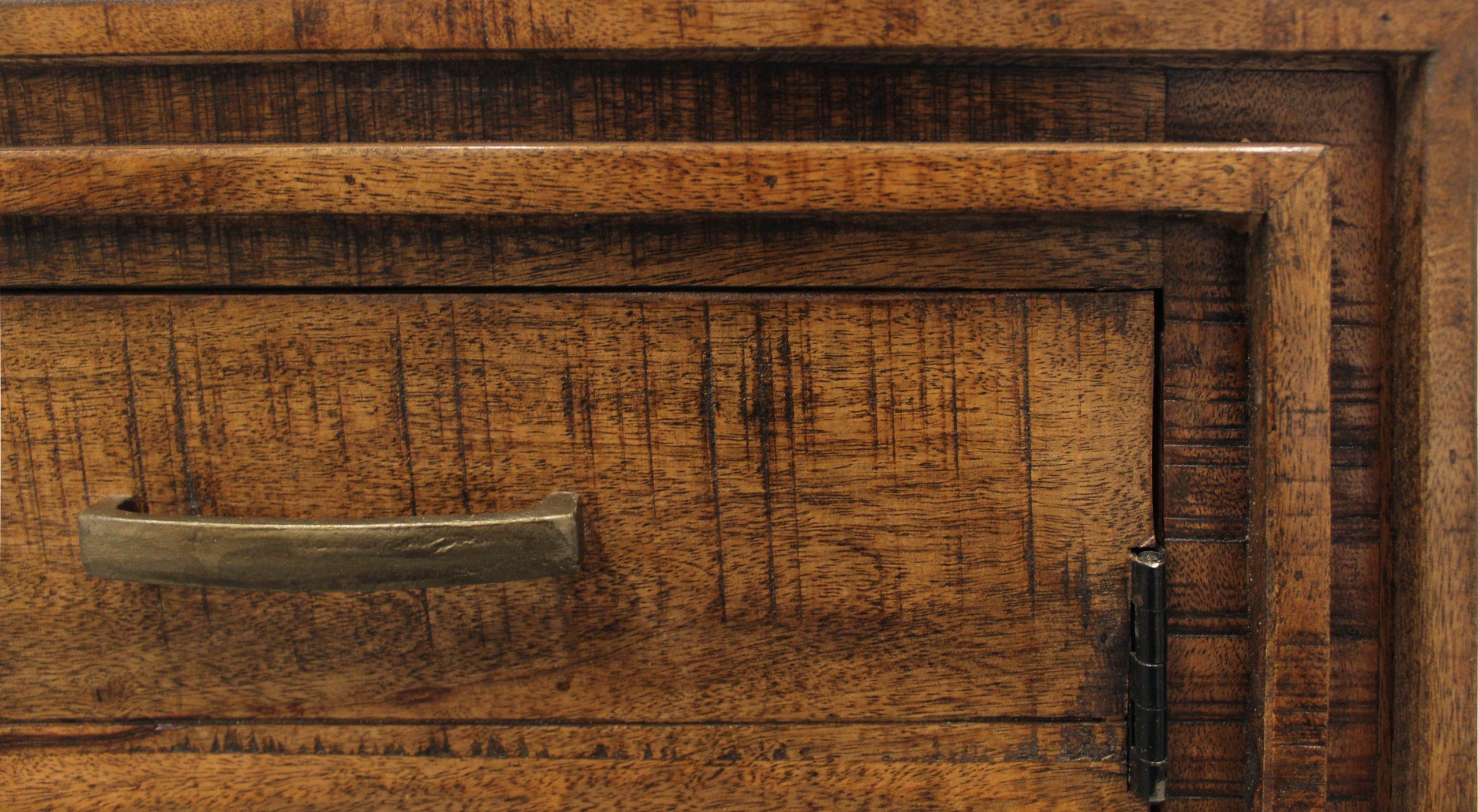 This collection features pieces crafted from solid kiln-dried mango wood on a brass-finished metal base. Each piece in the collection includes spacious drawers with brass-finished metal pulls. Always practical with its unique allure, the Maidlow Collection rests beautifully in a wide range of interior décors.