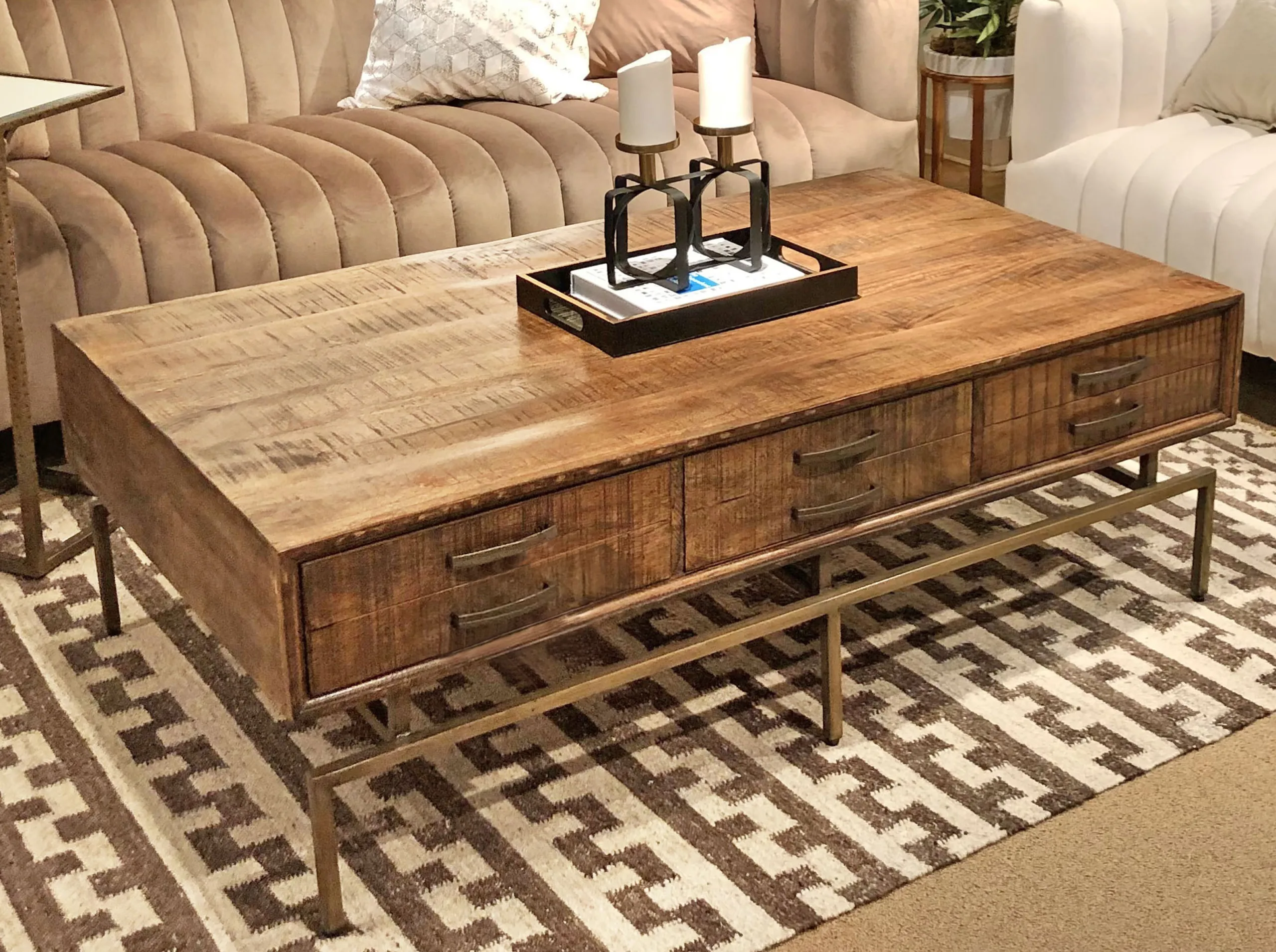 This collection features pieces crafted from solid kiln-dried mango wood on a brass-finished metal base. Each piece in the collection includes spacious drawers with brass-finished metal pulls. Always practical with its unique allure, the Maidlow Collection rests beautifully in a wide range of interior decors.