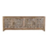 This stunning sideboard is constructed out of sturdy solid mango wood and features beautiful cane detailing on its two doors. Three drawers with removable metal handles provide additional storage to keep living spaces neat and tidy. The rich, deep color of the dark brown mango wood contrasts beautifully with the lighter colored cane, making this piece the perfect statement piece for any room.