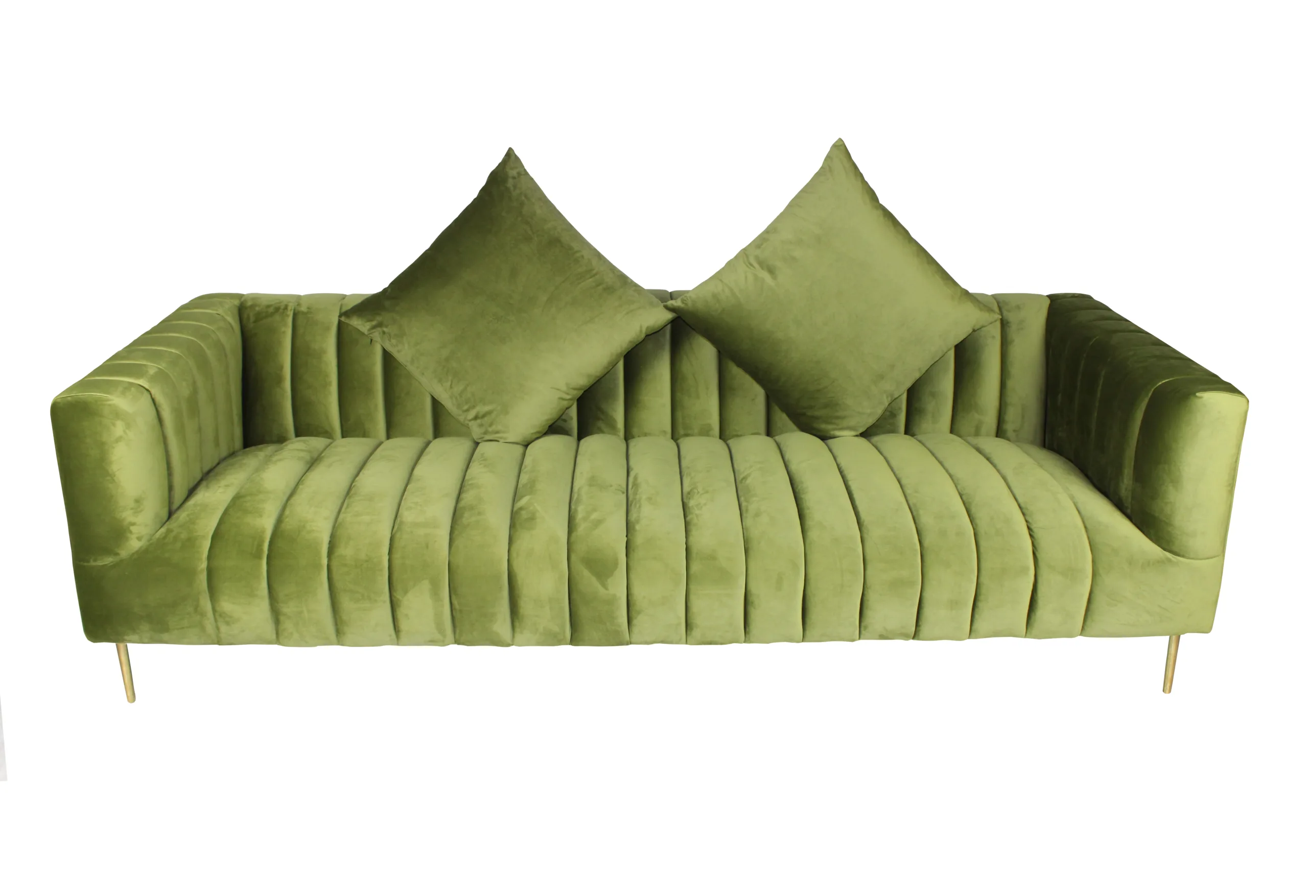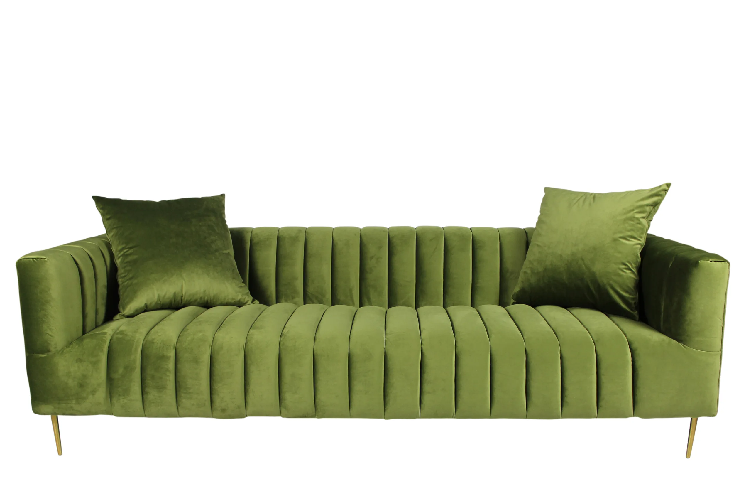 - Olive velvet with channel tufting