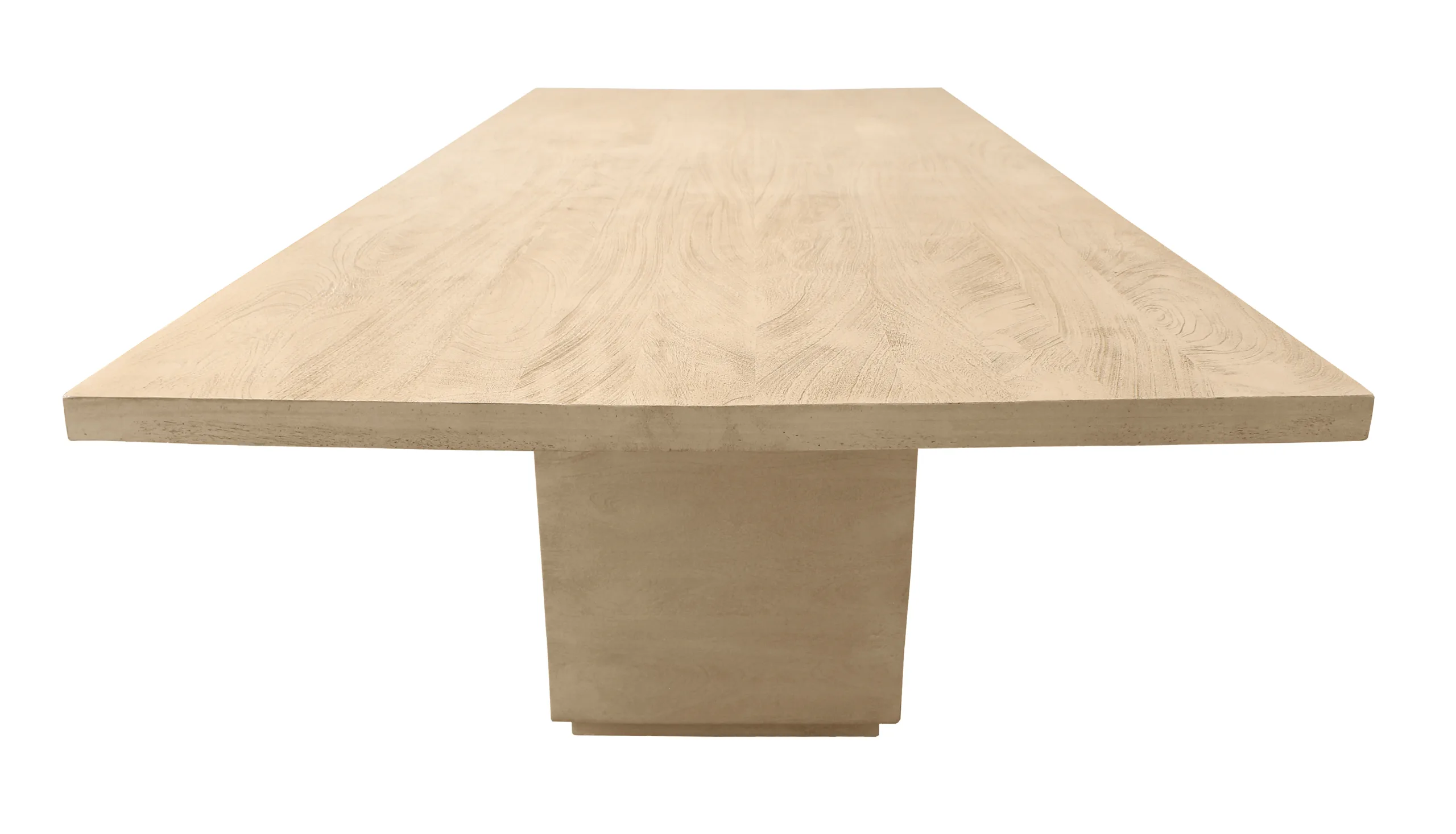 This 8-person dining set ties together traditional craftsmanship with an elegant modern twist. It includes one 72″ solid wood dining table, and 8 solid ash wood side chairs. This table features a hand-distressed stone natural finish to bring out the natural wood grain variation. Each chair is upholstered in premium boucle fabric for a touch of class.