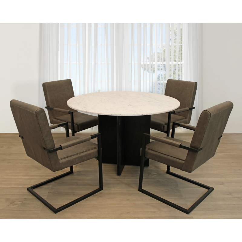 Terrain 5-Piece Dining Set with 48″ Round Dining Table and 4 Antique Gray Leather Chairs